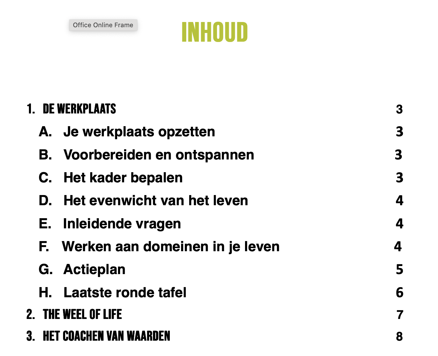 Op pagina 12 staat het levenswiel dat je kan printen en aan je coachees kan geven.