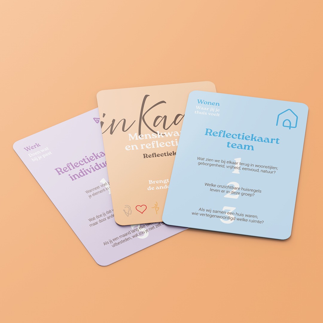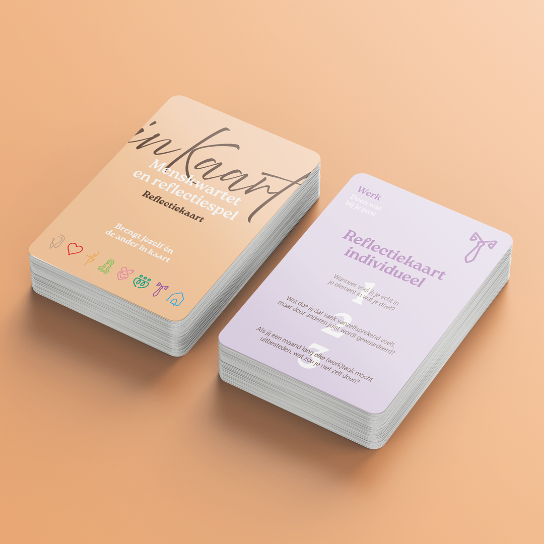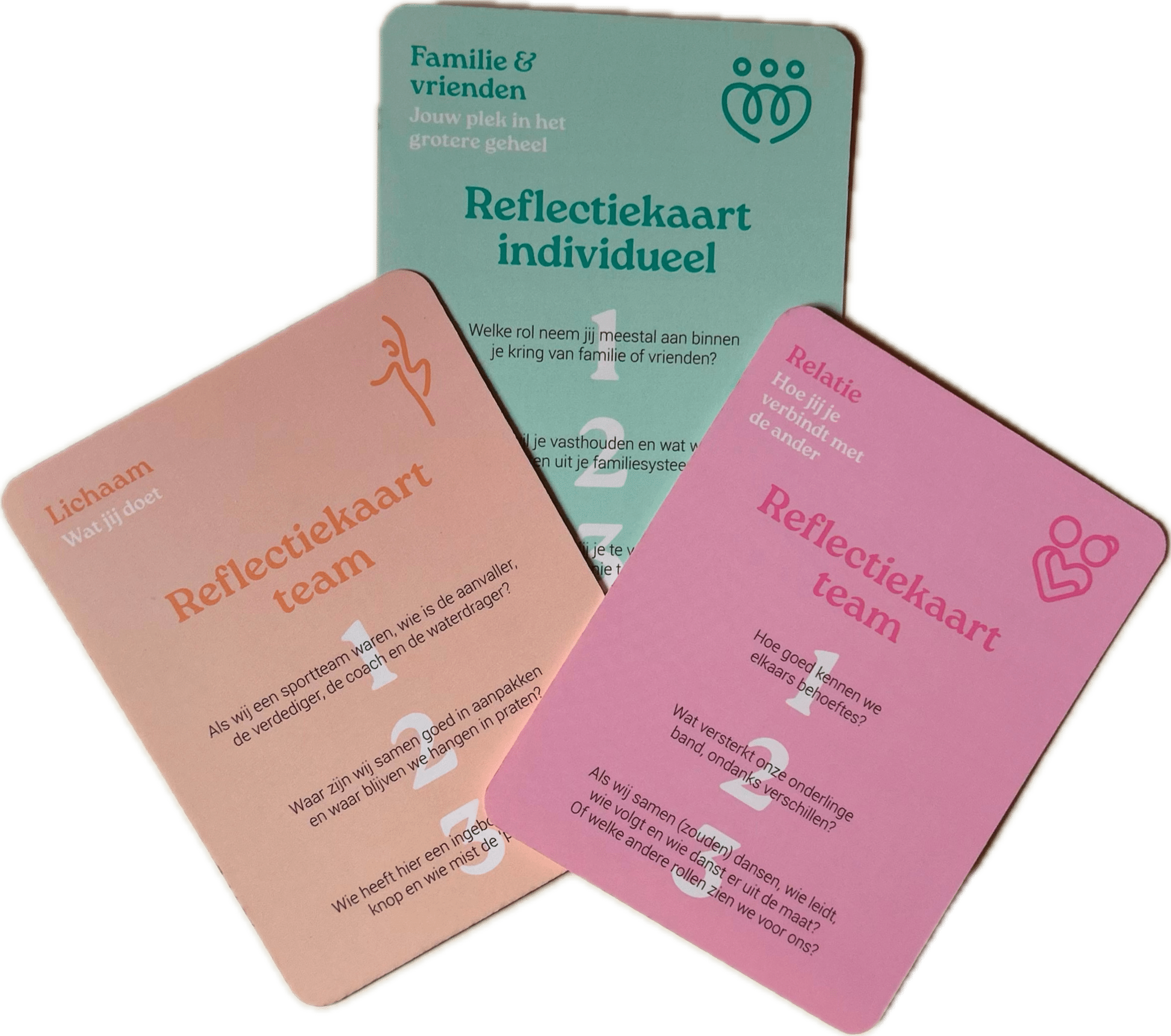 InKaart combineert een kwartetspel met individuele reflectiekaarten en teamreflectiekaarten. Die driedeling maakt het eenvoudig om van een speels begin naar betekenisvolle verdieping te gaan. Je kiest als coach de passende werkvorm: kwartetten in groepen of thematisch werken in 1:1.