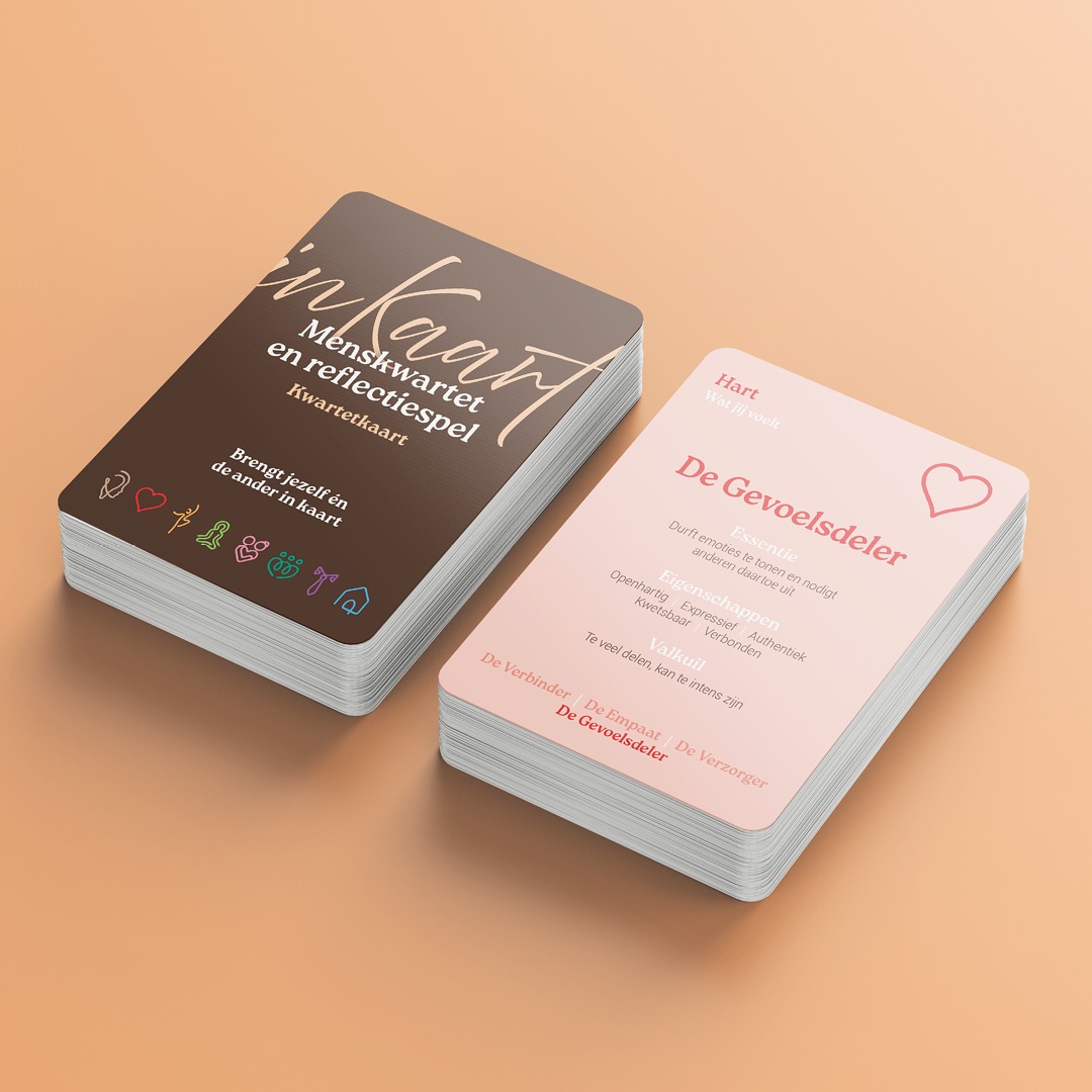 InKaart is een professioneel inzetbaar kwartet- en reflectiespel dat coaches ondersteunt bij het openen van echte gesprekken. Het biedt een scherpe en toegankelijke manier om gedrag, samenwerking en onderliggende patronen zichtbaar te maken.