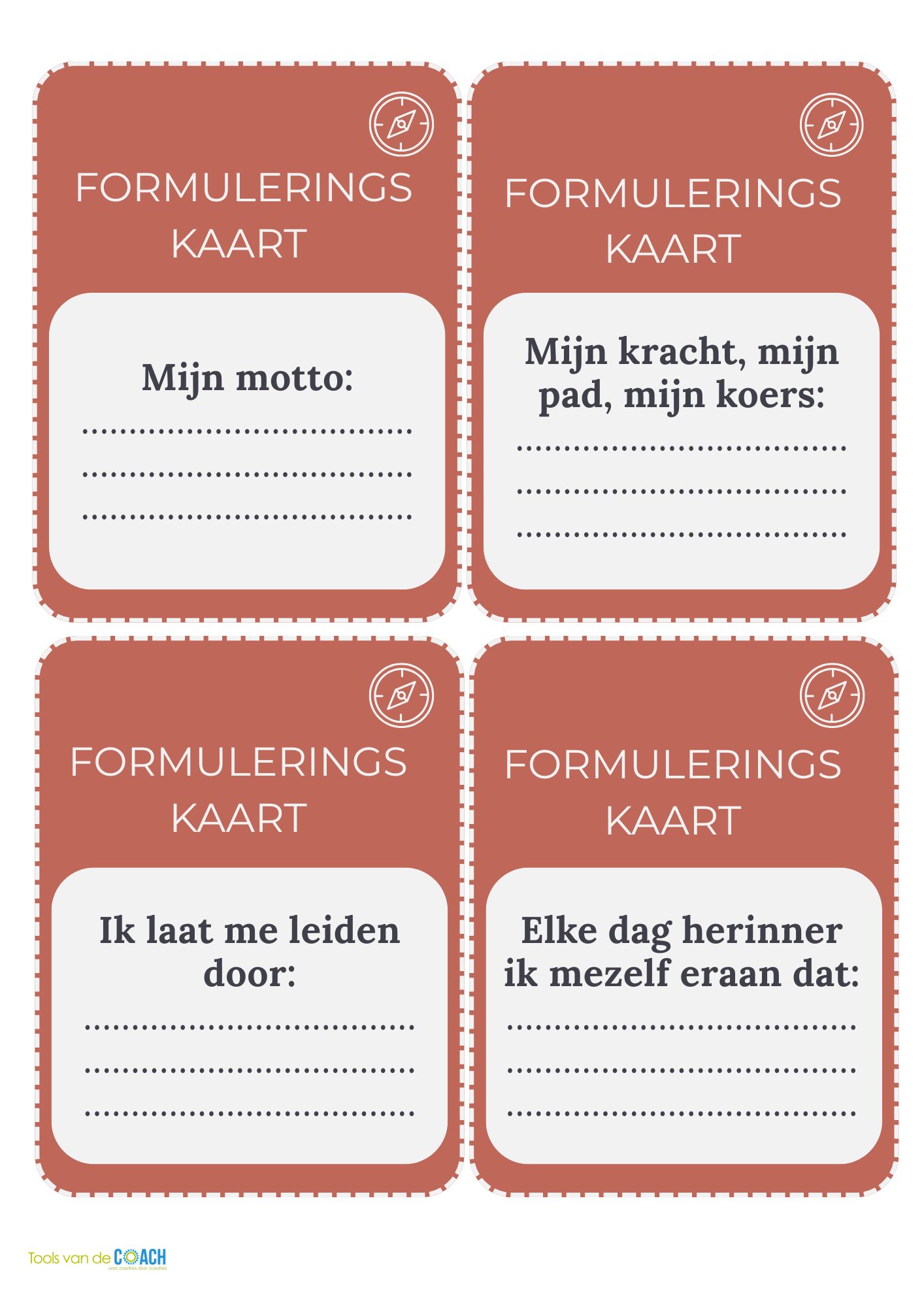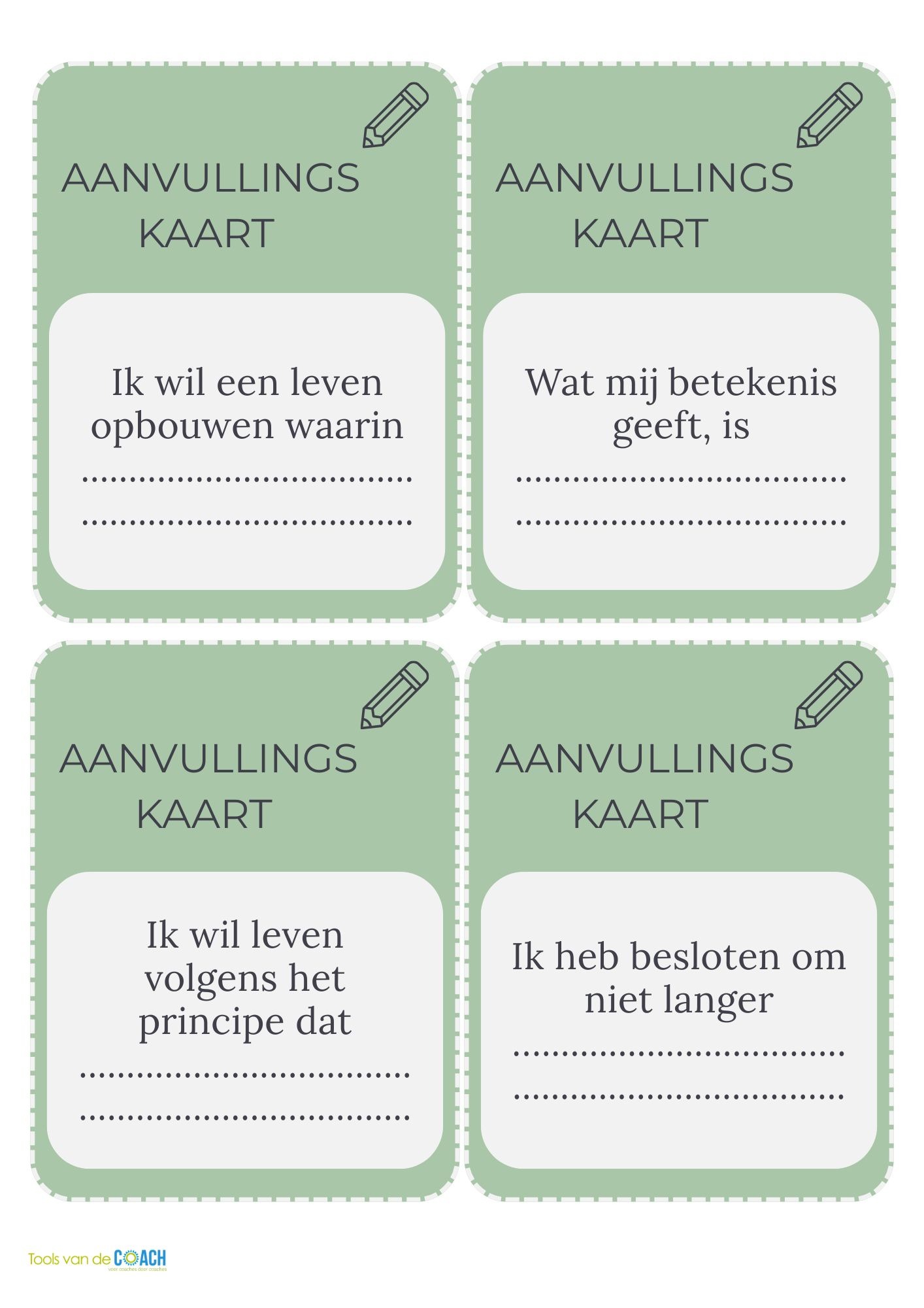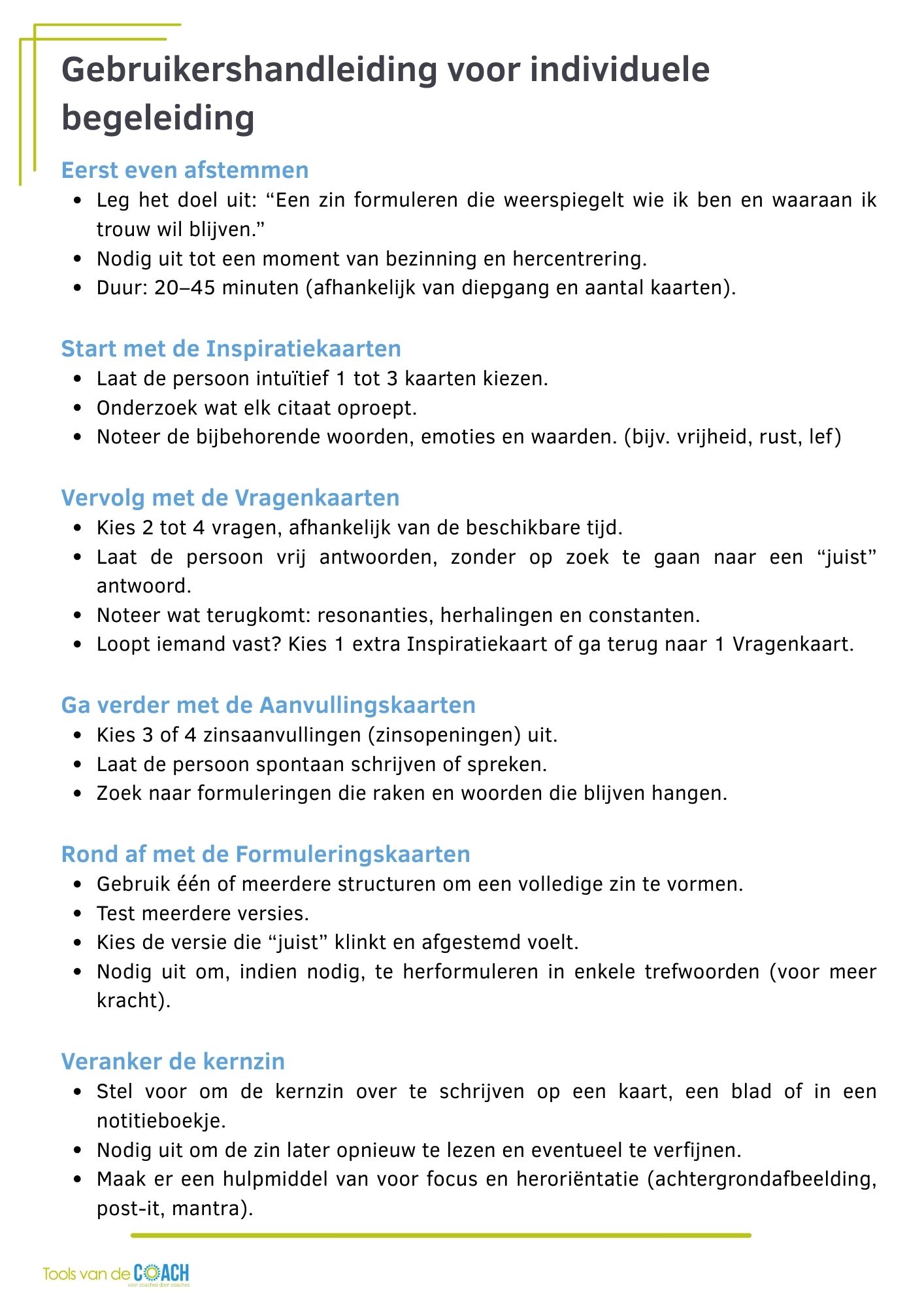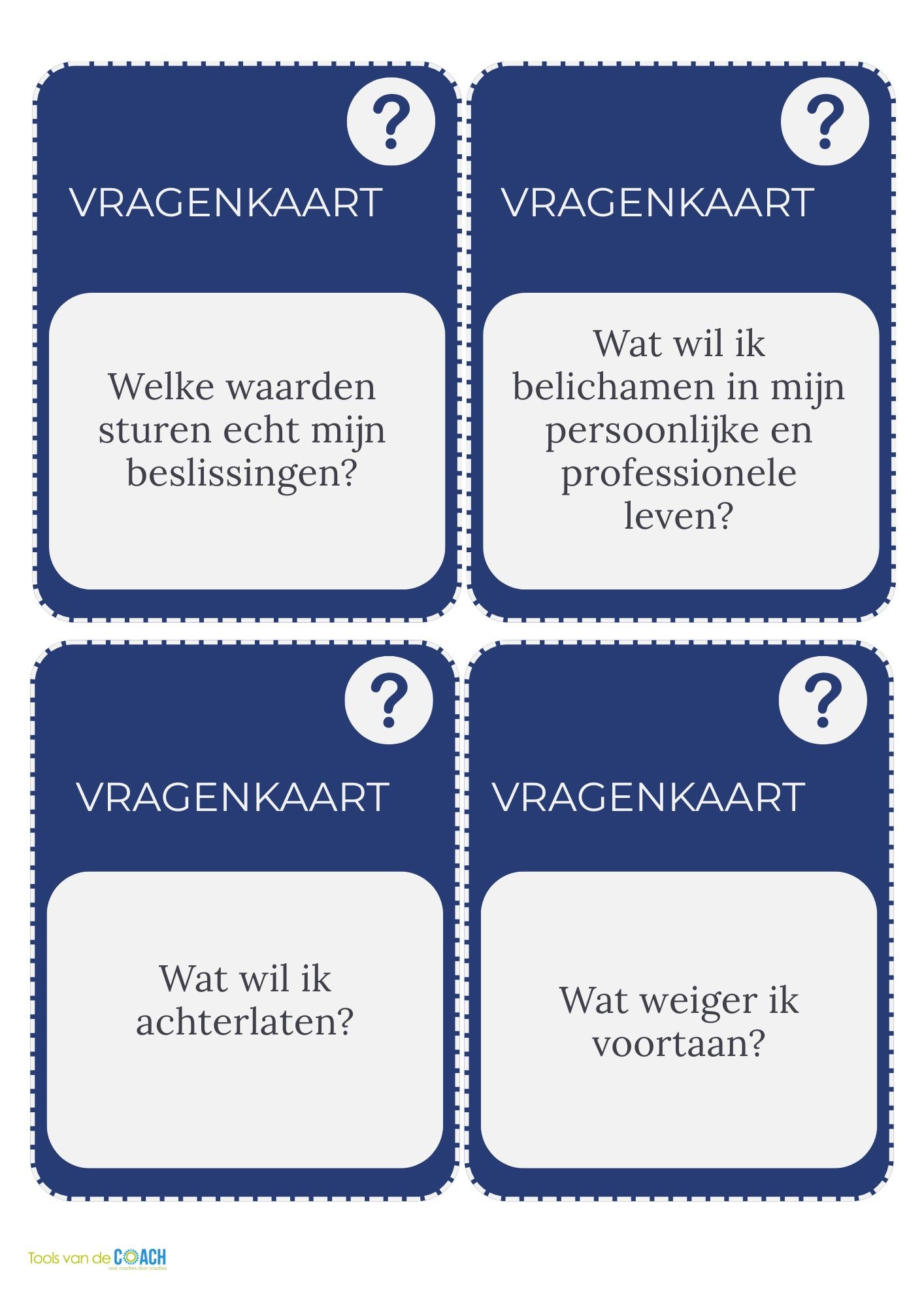 • Vragenkaarten: verdiepen waarden, overtuigingen en drijfveren