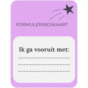 Je kunt het spel chronologisch inzetten (van inspiratie naar formulering) of intuïtiever, afhankelijk van waar de jongere op dat moment is. De route blijft hetzelfde: van gevoel en associatie naar woorden die richting geven.