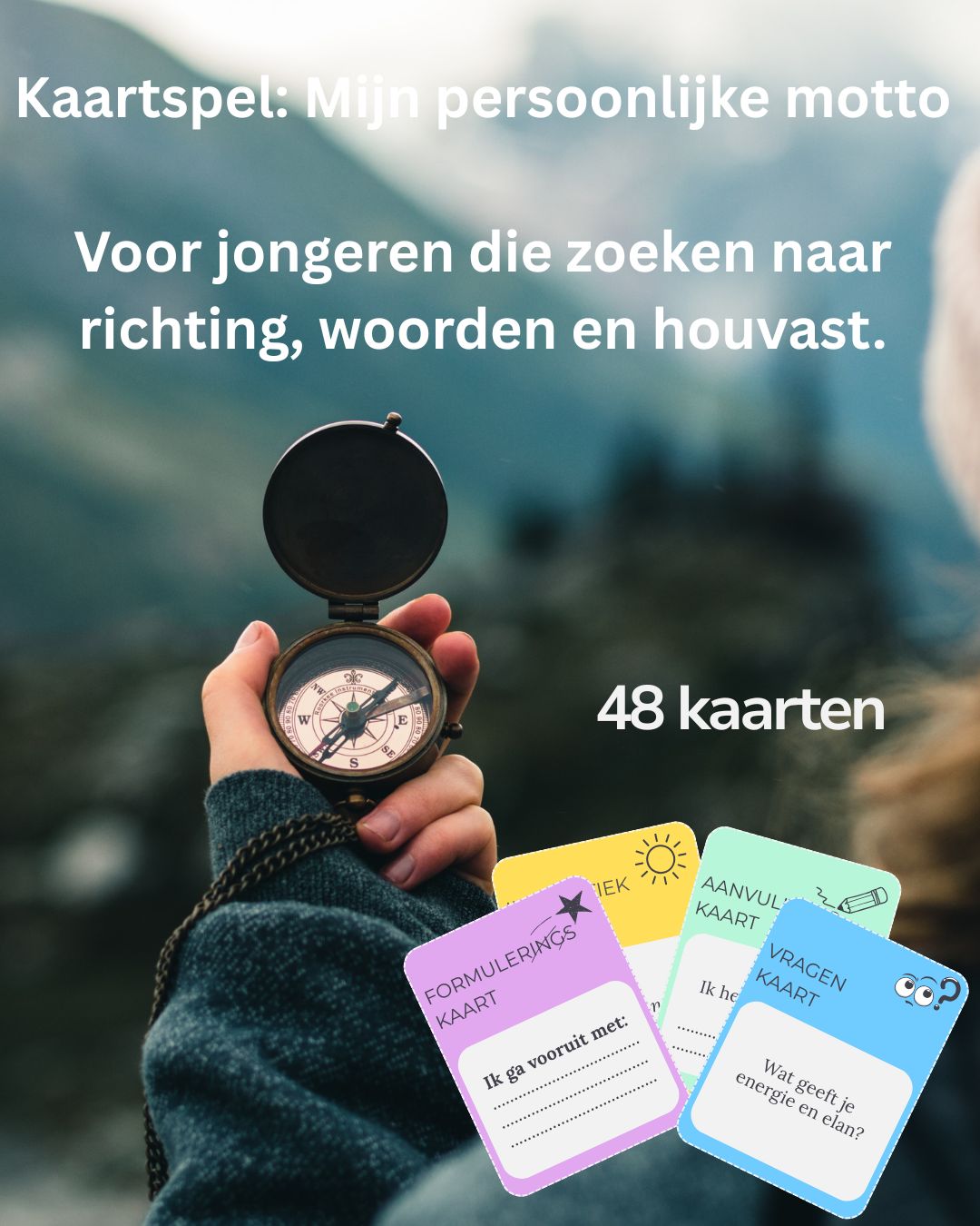 Mijn persoonlijke motto is een kaartspel dat jongeren (12–25) helpt woorden geven aan waarden, kracht en richting.