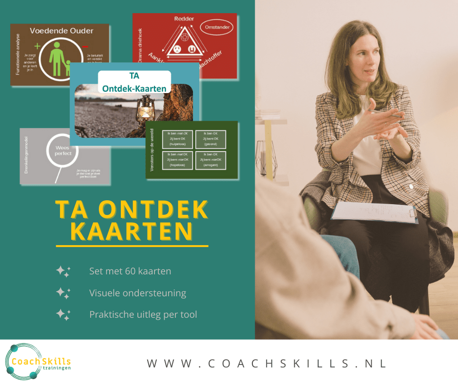 Met de TA Ontdek-Kaarten help je coachees niet alleen begrijpen hoe zij communiceren, maar ook hoe zij patronen kunnen doorbreken om vrijer en effectiever in het leven te staan.